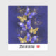 Composition of luxurious sapphire and gold jewellery butterflies on blue textured background.