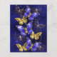 Composition of luxurious sapphire and gold jewellery butterflies on blue textured background.