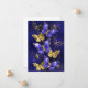 Composition of luxurious sapphire and gold jewellery butterflies on blue textured background.