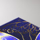 Composition of luxurious sapphire and gold jewellery butterflies on blue textured background.