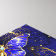 Composition of luxurious sapphire and gold jewellery butterflies on blue textured background.