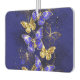 Composition of luxurious sapphire and gold jewellery butterflies on blue textured background.
