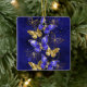 Composition of luxurious sapphire and gold jewellery butterflies on blue textured background.
