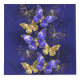 Composition of luxurious sapphire and gold jewellery butterflies on blue textured background.