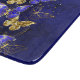 Composition of luxurious sapphire and gold jewellery butterflies on blue textured background.