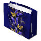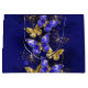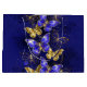 Composition of luxurious sapphire and gold jewellery butterflies on blue textured background.