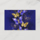 Composition of luxurious sapphire and gold jewellery butterflies on blue textured background.