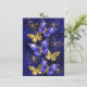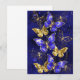 Composition of luxurious sapphire and gold jewellery butterflies on blue textured background.