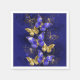 Composition of luxurious sapphire and gold jewellery butterflies on blue textured background.