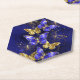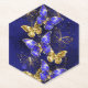 Composition of luxurious sapphire and gold jewellery butterflies on blue textured background.