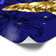 Composition of luxurious sapphire and gold jewellery butterflies on blue textured background.