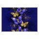 Composition of luxurious sapphire and gold jewellery butterflies on blue textured background.