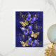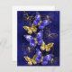 Composition of luxurious sapphire and gold jewellery butterflies on blue textured background.