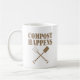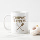 Compost Happens! - gardening humour in brown stencil lettering with garden tools. Also available as a travel mug.