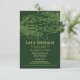 Green computer circuit board Bar Mitzvah reception and website enclosure card. This non-traditional computer motherboard or electronics inspired design features a subtle Jewish Star of David along with circuitry as you'd see on an electronic circuit board. These elements are paired with digital computer fonts and some binary code. The binary code actually says "Celebration", but if you want, we can change it to the binary code of the Bar Mitzvah boy's name or remove it altogether. The colours are various shades of green from a light lime green to a deep forest green.