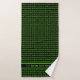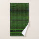 Bright green on black with a pattern of ones and zeroes in a nod to retro computing. Binary code dates back to early days of computer history but still has a futuristic look, especially paired with cyberpunk green. You can add a short custom message or name to the larger sizes and an initial to the washcloth. Looks great as a set for a teenage lad or tech-loving guy of any age.