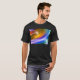 I give wanted to give this a 4 instead of a 5 because these Basic DARK T0shirts run unexpectedly SLIM or Narrow. Which is great if you do not have a potbelly, but I have a paunch. It isn't the shirt's fault that I've got a beer belly. The design and shirt itself is a quality cotton shirt. The color is more of a deep purple, but still a very pretty color. The Basic DARK T-shirts run a bit SLIMMER than the Basic Ts. The neck is a fraction narrower (or seems to be narrower) also. I'm a paunchy middle-aged woman and my neck is 12 inches (31cm) thick and the neckline fell about the same as in the photo of the man, and I had the desire to tug it a bit. So if you're a thick necked man or like loose shirts, be aware these are slimmer shirts. Once I get rid of my lockdown paunch it'll look great. The shirt washed well in cold water with no apparent bleeding. We don't have a dryer, so it hung dry. Did not shrink. Love the colors and the design. The design looks smaller on my shirt than it does on the model on-line. But still, it looks good on the shirt. The printing looks as it does on the model, just the size seems fractionally smaller. Washed garment in cold water, hung dry and design appeared unaffected.