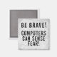 "Be Brave! Computers can sense fear!" Whether you´re a pc beginner or a seasoned geek - watch out for your computer, because they sense your fear and react accordingly! Who says computers are just machines!? Silly geek saying in distressed font.