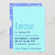 Trendy computer nerd themed birthday party invitation in accents of aqua and blues customisable to your specifics.