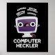 Computer Heckler Funny Hacker Pun features a cute computer heckling. Perfect pun gift for family and friends who love cute computer hacker puns.