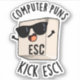 Computer Puns Kick Esc Funny Keyboard Pun features a cute escape key declaring his love for computer puns. Perfect Puns gift for family and friends who love cute keyboard puns.