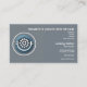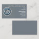 A settings gear icon with cables in a blue circle on a grey background makes a sharp and professional business card for a computer repair shop. Could also be used for a data recovery service, computer system builder, IT guru, or computer sales.