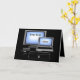 An original graphic design of a computer screen, laptop, tool box, and hand tools by artist/designer Charmaine Paulson on a computer repair service greeting card. The card has templates for your personalisation.