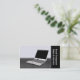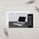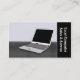 Illustration of a laptop computer on a desk. This modern and professional business card has a space on the right for your company name in vertical text. Excellent business card for computer technicians, sales and repair companies.
