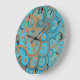 Concentric Circle Gradient Orange Rust Turquoise Large Clock