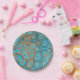 Round Paper Plates printed with Concentric Circle Gradient Colour Art artwork design image by TheFabricSeal at Zazzle is a futuristic technical engineering illustration. This Science Fiction hub spherical circle drawing combines some innovative digital graphic art with earthy Southwestern desert landscape colour palette tones. Colour Fill includes turquoise blue and green, aqua and teal, tan and orange.