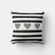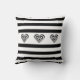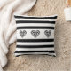 Modern concentric hearts on black and white striped Throw Pillow. Black and white stylish striped Throw Pillow.