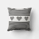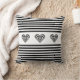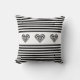 Modern concentric hearts on black and white striped Throw Pillow. Black and white stylish striped Throw Pillow.