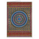 Abstract geometric design featuring detail from mediaeval Armenian illuminated manuscript in gold, red, purple and blue