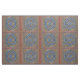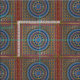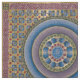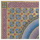 Abstract geometric design featuring detail from medieval Armenian illuminated manuscript in gold, red, purple and blue