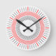 A clock face with a concentric circles design, in which rays are arranged to mark the minutes and hours in the outer circle, and used for decorative effect in the inner circles, the first inner ring having a tighter angular distribution of lines. However the second inner ring has the usual minute spaces. All the rays line up correctly and the hours are marked with a bolder red line in the outer circle providing both a decorative and practical clock face.