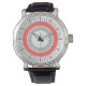 A watch face with a concentric circles design, in which rays are arranged to mark the minutes and hours in the outer circle. This version has a solid coloured first inner circle and the second inner ring has minute rays. All the rays line up correctly and the hours are marked with a bolder line in the outer circle providing both a decorative but practical clock face.