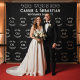 Create a true "VIP" experience at your wedding reception with this professional step and repeat photo backdrop! Inspired by concert tour sponsor walls and red carpet events, this large-scale photo booth background features a stylish monogram and wedding date pattern in white on black.