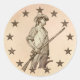 Drawing of Concord Minuteman with 13 stars in a circle, for 13 colonies, from first American flag.