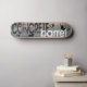 Barrel X Skateboard design with concrete background and text that reads "Concrete barrel". Various skateboarding poses placed throughout design.