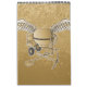 Concrete mixer beige with wings, pickaxe and shovel.