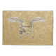 Concrete mixer beige with wings, pickaxe and shovel.