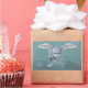 Concrete mixer blue-grey with wings, pickaxe and shovel.