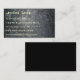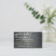 Mottled greys, silvers and white give this business card a moonscape-like texture. Similarily, the texture is reminiscent of rough concrete as well, making this a great design for those in construction or with an interest in space.