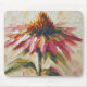 A vibrant display of brush strokes captures a blooming cone flower with pink petals and green leaves, set against a textured background