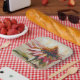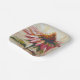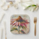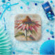 A vibrant display of brush strokes captures a blooming cone flower with pink petals and green leaves, set against a textured background
