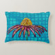 The cushion is small to medium sized. It can be washed. It is well constructed. The material used is pleasant and feels decent quality. It has a very slight plush feel which is good. It is well labelled and its care clearly stated. Theres nothing not to like about it. All in all a good item. The deduction of one star overall is due to long delays in delivery to the UK. It's not clear if this was due to Zazzle or somewhere else in the chain as I did not receive status updates of dispatch or progress. I cannot comment anymore on that other than to say that was our experience but it may not be the same for you. The printing was surprisingly close to what we were expecting. Its an art piece and on material so its hard to assess the precision of printing but it seems close to the original. The soft lines are reproductions of the original. The colour is a fair reflection of the painting. This was printed in the US and it looks like US quality. No issues.
