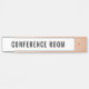 Personalise our metal conference room sign with your custom text or a different language. You can hang it on your office door or wall with the self adhesive backing. Your print will be on a sliding insert which is interchangeable in case you need to switch the sign. Available in silver, black, or rose gold metal colours in two sizes – standard 2 inch x 8 inch or long 2 inch x 10 inch – and in two styles – as a door sign or a desk sign. You can customise the white background colour. No minimum order quantity and no setup fee.