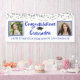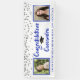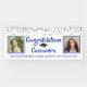 Silver glitter confetti and CONGRATULATIONS (graduate's name) in a brush script font in royal blue. Honour and celebrate the graduate and welcome party guests with this banner sign featuring two photos of the graduate. Personalise it with their name, school and graduation year or any text you desire. PHOTO TIP: For fastest/best results, choose a photo with the subject in the middle and/or pre-crop it to a square shape BEFORE uploading. Contact the designer via Zazzle Chat or makeitaboutyoustore@gmail.com if you would like this design modified, on another product or coordinating item.