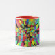 A vibrant abstract flower in shades of blue, purple, red, coral, yellow, gold, green and more!