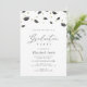 simple black and white design with elegant script and graduation cap confetti. The text and colors can be edited.